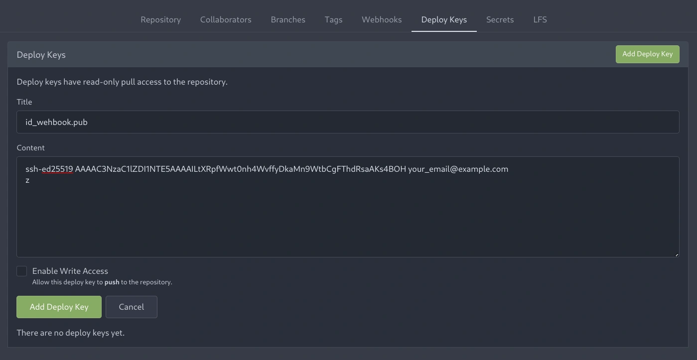 1. Tambahkan id_webhook.pub di Gitea _site repository