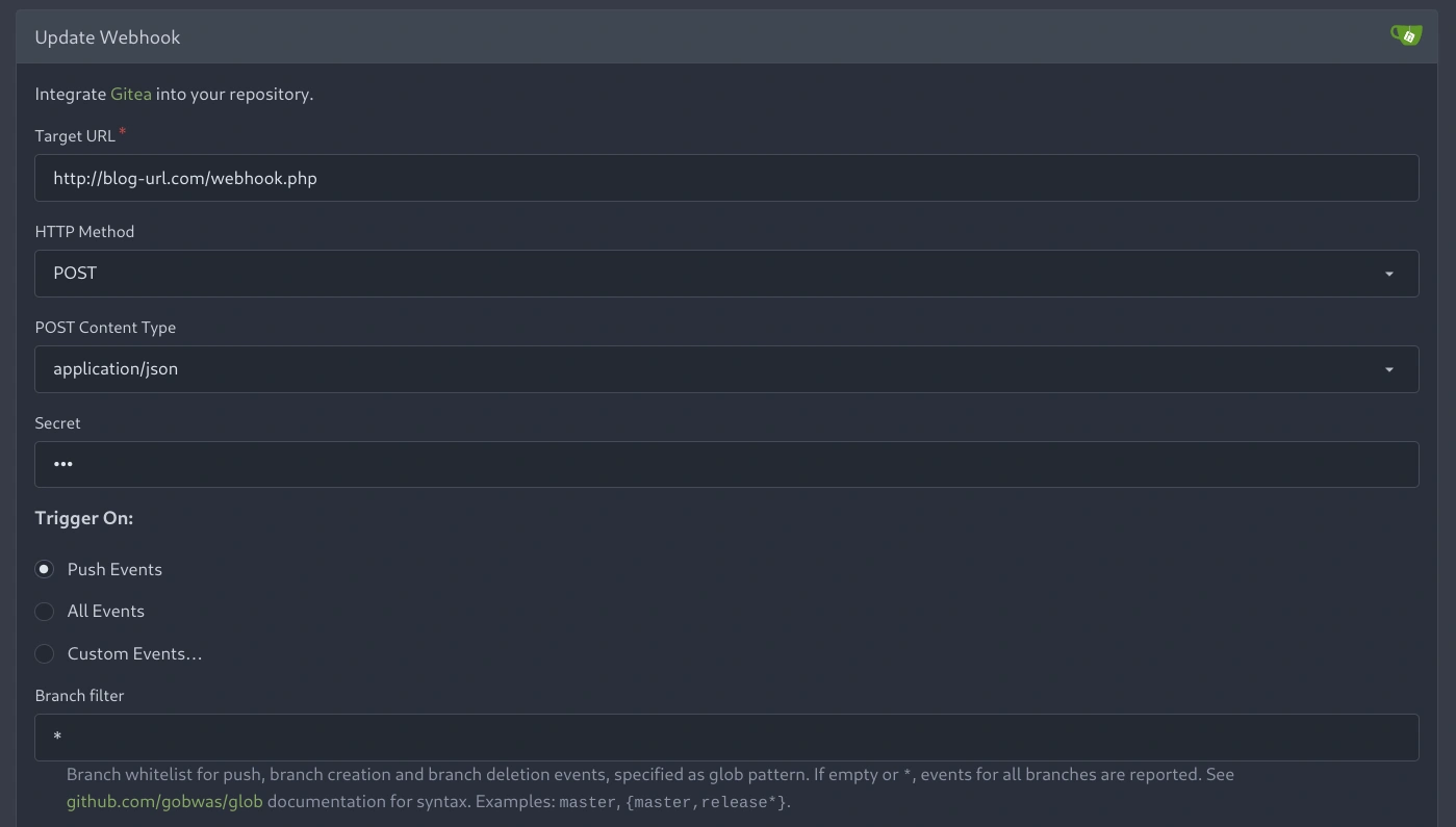 Setup webhook di Gitea repository