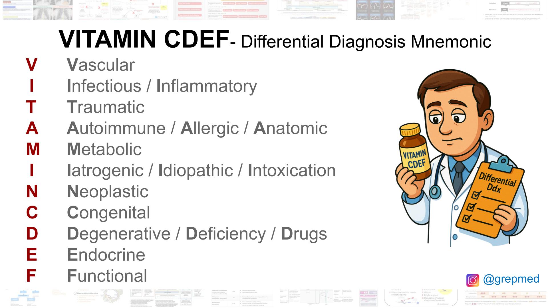Differential Diagnosis This is a list of the different possible diagnosis, from most to least likely, and the thought process behind this list. This is where the decision-making process is explained in depth. Included should be the possibility of other diagnoses that may harm the patient, but are less likely.