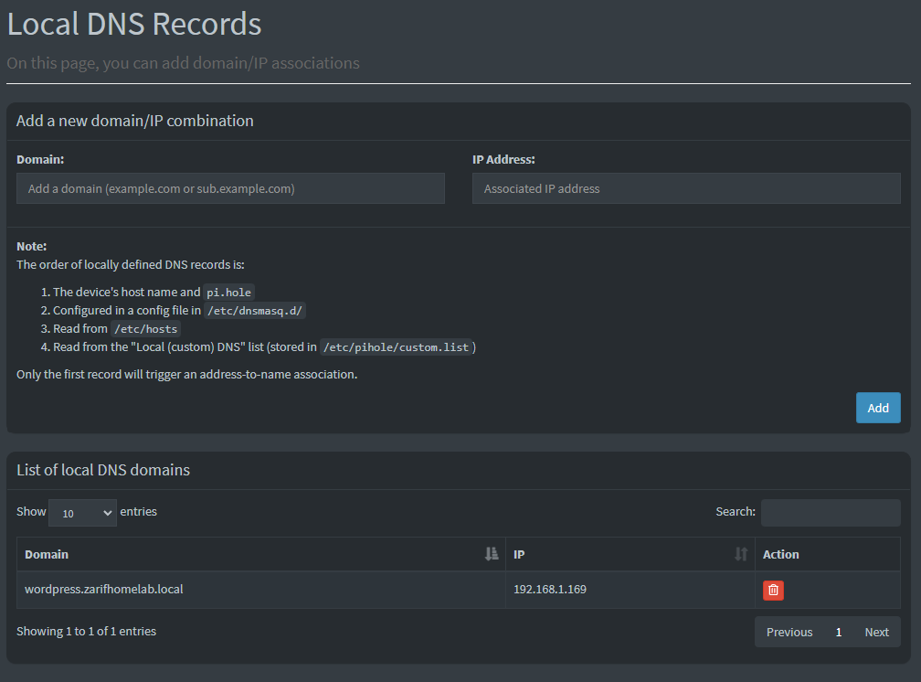 - Layari alamat yang anda masukkan didalam Pi-hole. (wordpress.zarifhomelab.local dalam kes ini)